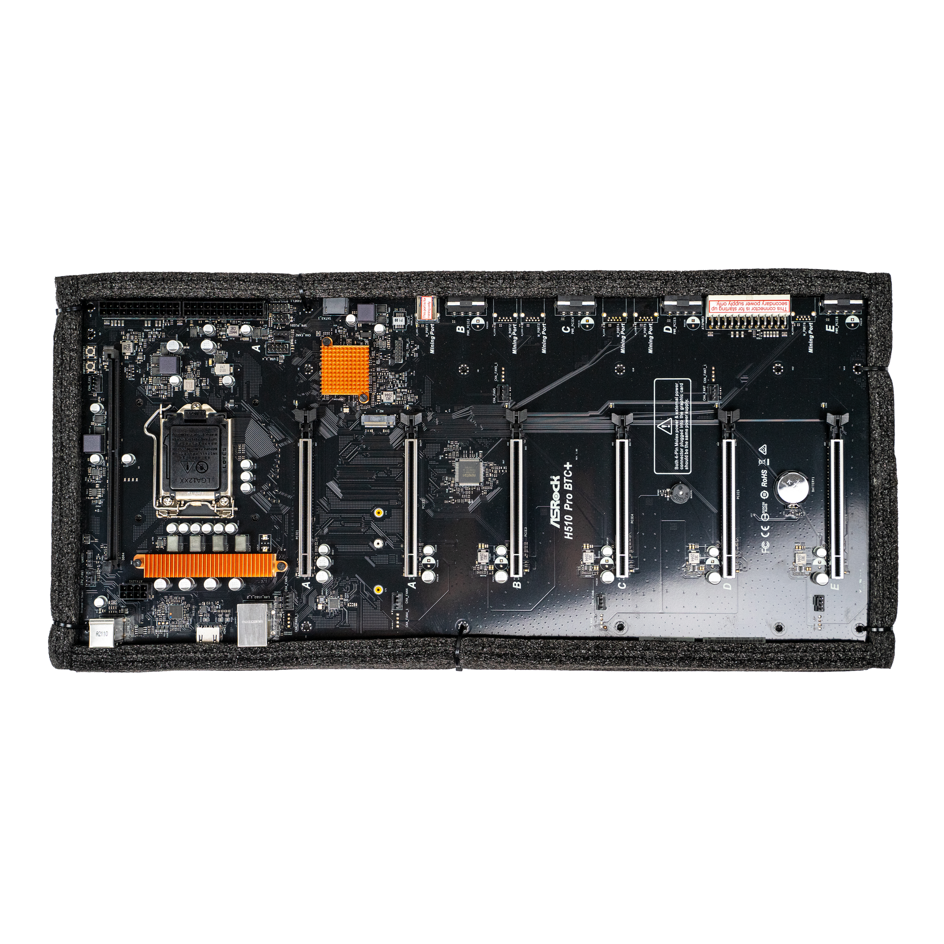 The ASRock H510 Pro BTC+ is a specialized motherboard engineered for cryptocurrency mining, supporting both 10th and 11th generation Intel® Core™ processors on the LGA 1200 socket.
